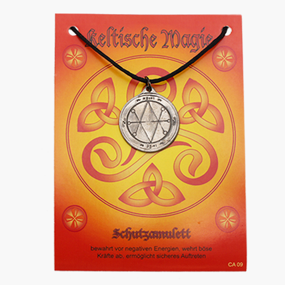 Alle Anhänger sind aus nickelfreiem Zinn gefertigt. Die Anhänger sind auf Band attraktiv auf einer detailierten Beschreibungskarte in einer Zellophanverpackung drapiert. Die Amulette werden zusammen mit dem „Das Praktische Lexikon der Amulette“ von W.Avalon verpackt. Das Heftchen informiert über Herkunft und Bedeutung der 100 wichtigsten Amulette.