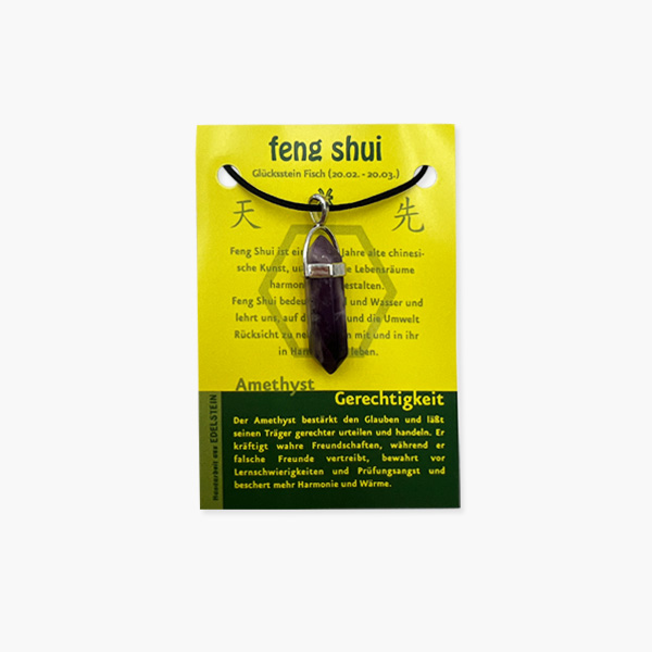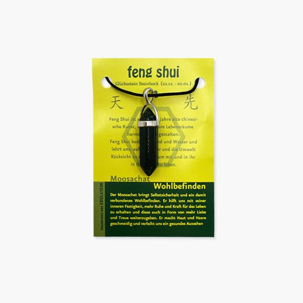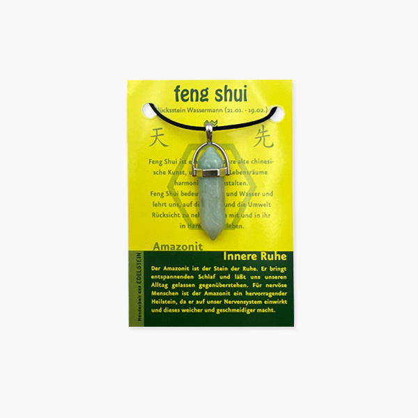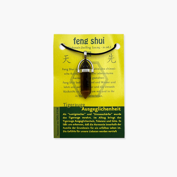 36 (3×12) oder 72 (6×12) Edelsteinanhänger Feng Shui auf kleiner Karte 6x9cm in Folie verpackt in der Glücksteinkiste aus Holz, nach Sternzeichen sortiert
