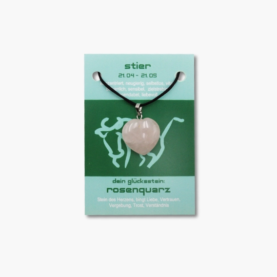 36 (3×12) oder 72 (6×12) Edelstein Anhänger Herz mit Öse auf kleiner Karte 6x9cm in Folie verpackt in der Glücksteinkiste aus Holz, nach Sternzeichen sortiert
