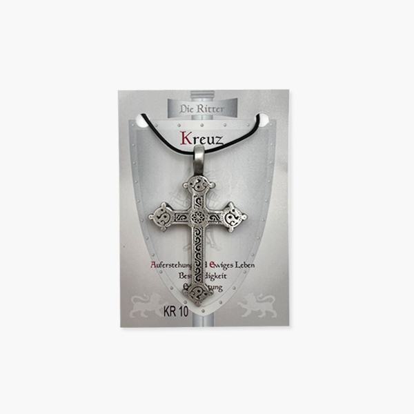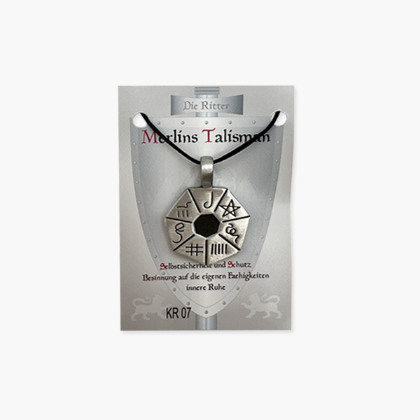 36 (3×12) oder 72 (6×12) Ritter-Anhänger aus nickelfreiem Zinn auf kleiner Karte 6x9cm in Folie verpackt in der Glücksteinkiste aus Holz, nach Symbol sortiert