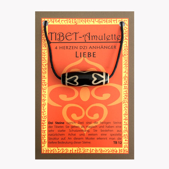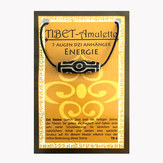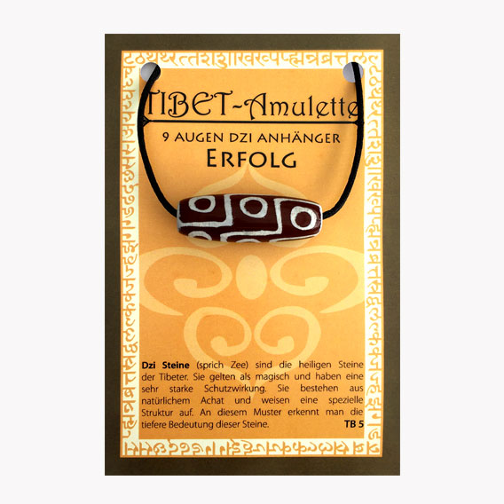 Dzi Steine sind die heiligen Steine der Tibeter. Sie gelten als magisch und haben eine sehr starke Schutzwirkung. Sie bestehen aus natürlichem Achat und weisen spezielle Muster auf, an denen man die tiefere Bedeutung der Steine ablesen kann. Die Anhänger sind auf ein Seidenband gefädelt und attraktiv auf einer detailierten Beschreibungskarte in einer Zellophanverpackung drapiert. Die Karten können optimal im Wandhänger oder in den Drehständern präsentiert werden. Die Größe einer Karte ist ca. 10cm x 14cm. Es sind 12 unterschiedliche Motive verfügbar.